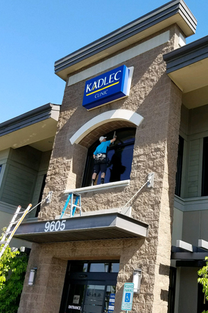 Clean business windows are imperative to displaying a cleanliness within the standards of business. Businesses often request window cleaning services from professional window cleaners because their employees are not insured to be on ladders, employees do not have proper ladder training, or because after the windows have been washed the windows still do not have a clean look due to streaking or hard to reach areas. With the amazing sunny weather we get in the Tri-Cities the streaks can become very obvious as the sun shines through the windows. The technicians working at Clear View Window Cleaning and Pressure Washing have not only the basic ladder training required through OSHA and Labor & Industries but also have extensive monthly continued training and daily ladder safety equipment checks. We work on ladders everyday!